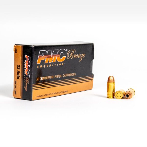 The .32 Auto is an underrated round, but a favorite among those who are lucky enough to own one. With the right ammunition, it makes for an excellent lightweight close quarters self-defense or even small game hunting round. PMC offers just such a round with their 32B ammo, a 32 Auto 60 grain Jacket Hollow Point (JHP).